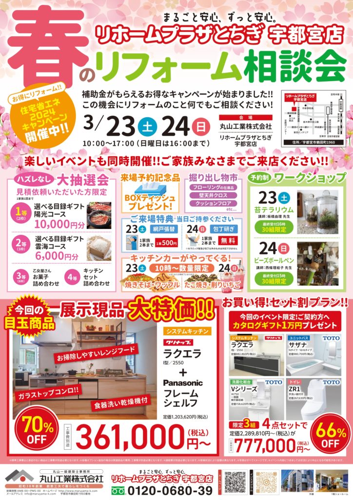 リホームプラザとちぎ宇都宮店では、春のリフォーム相談会を開催いたします。