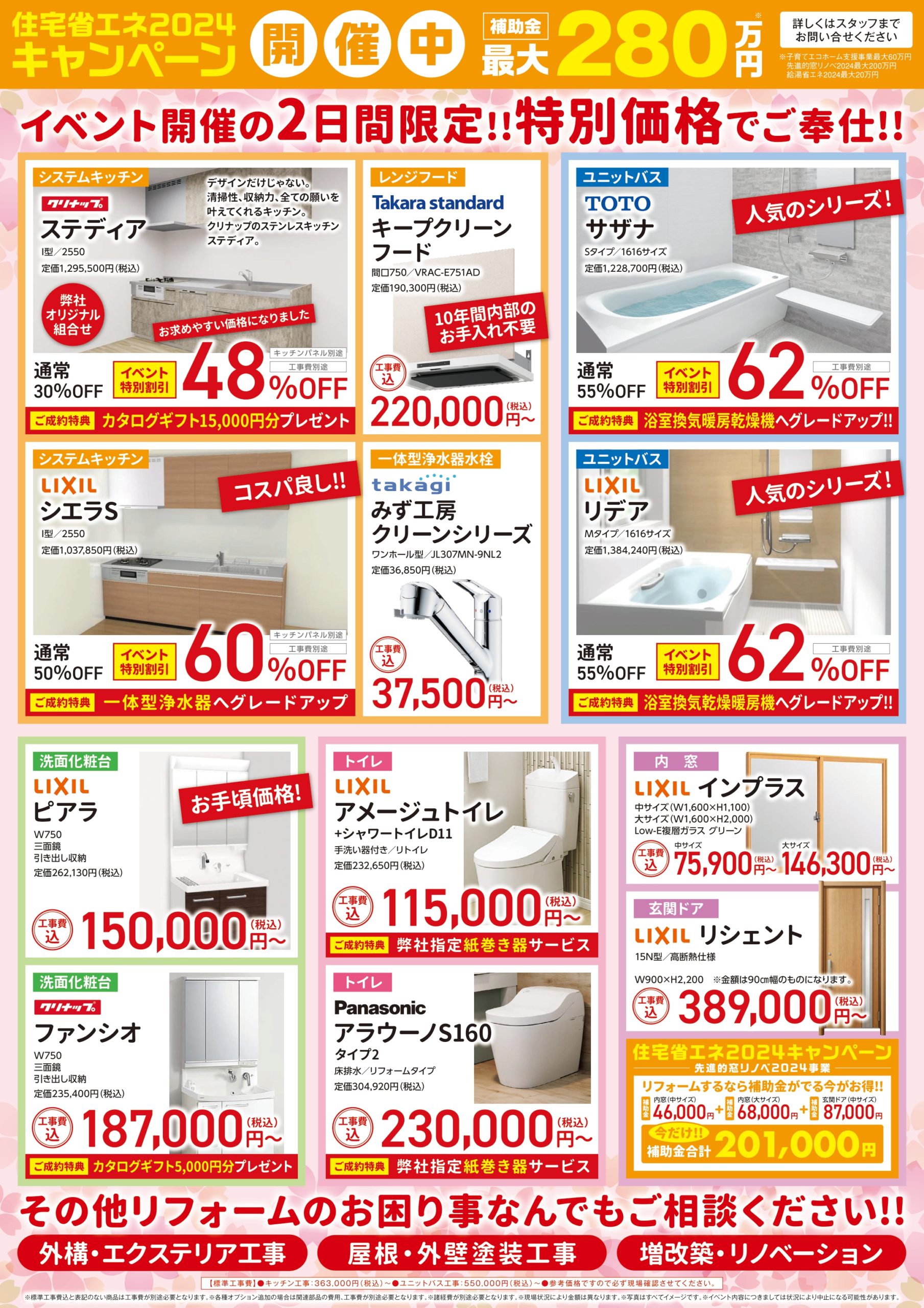 2日間限定特価でのおすすめリフォーム対応や補助金についてのご相談にもお答えいたします!