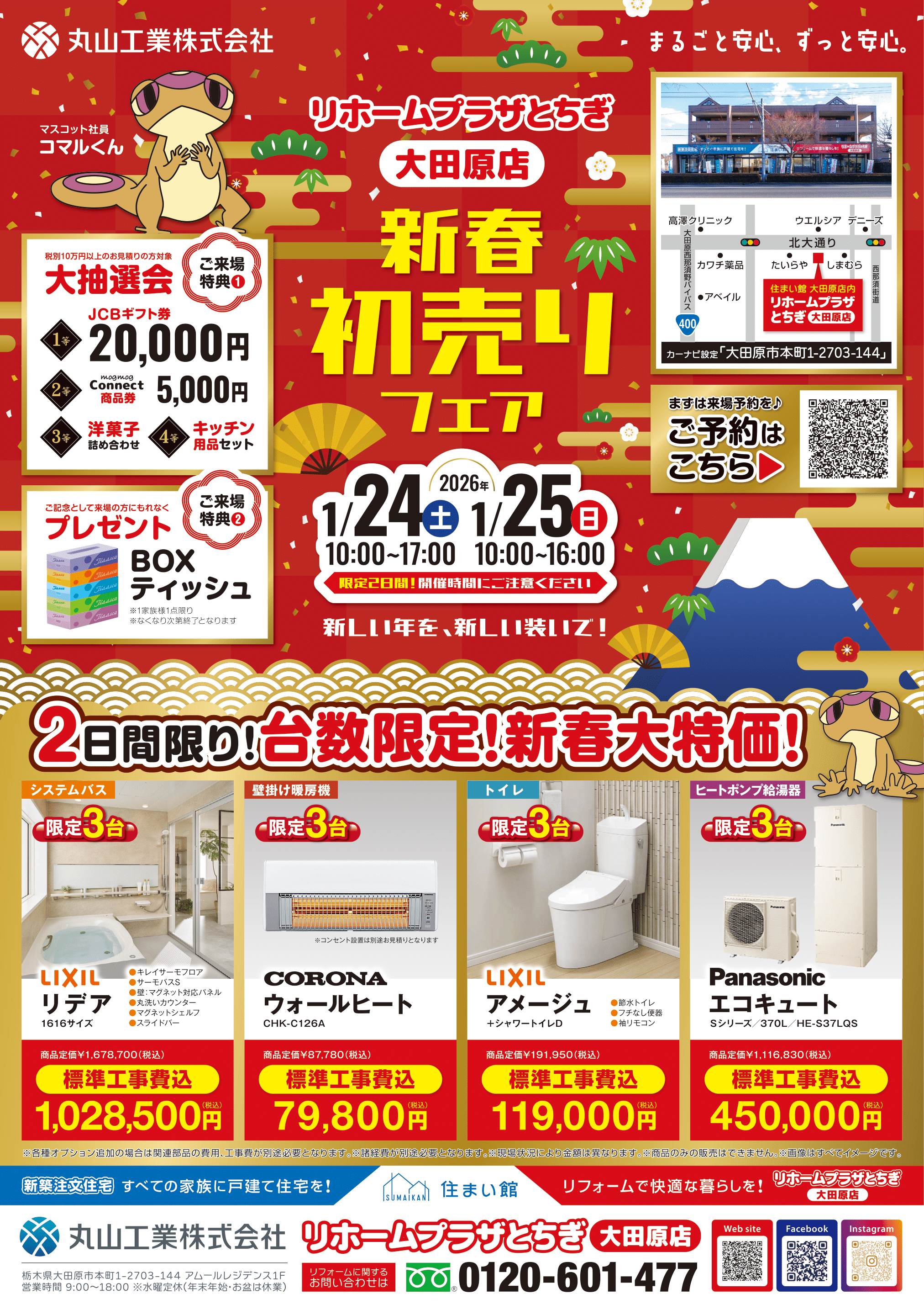 リホームプラザとちぎ大田原店で、新春初売りフェアを開催いたします。