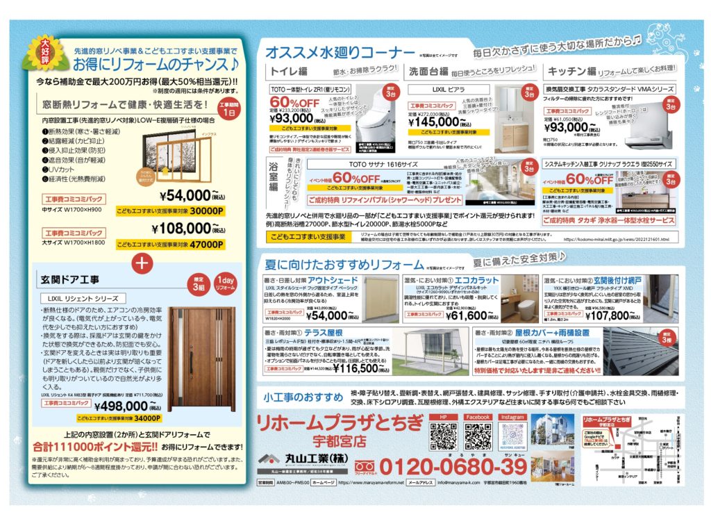 今回のチラシでは、これからの夏に向けたおすすめリフォームをご紹介しています!