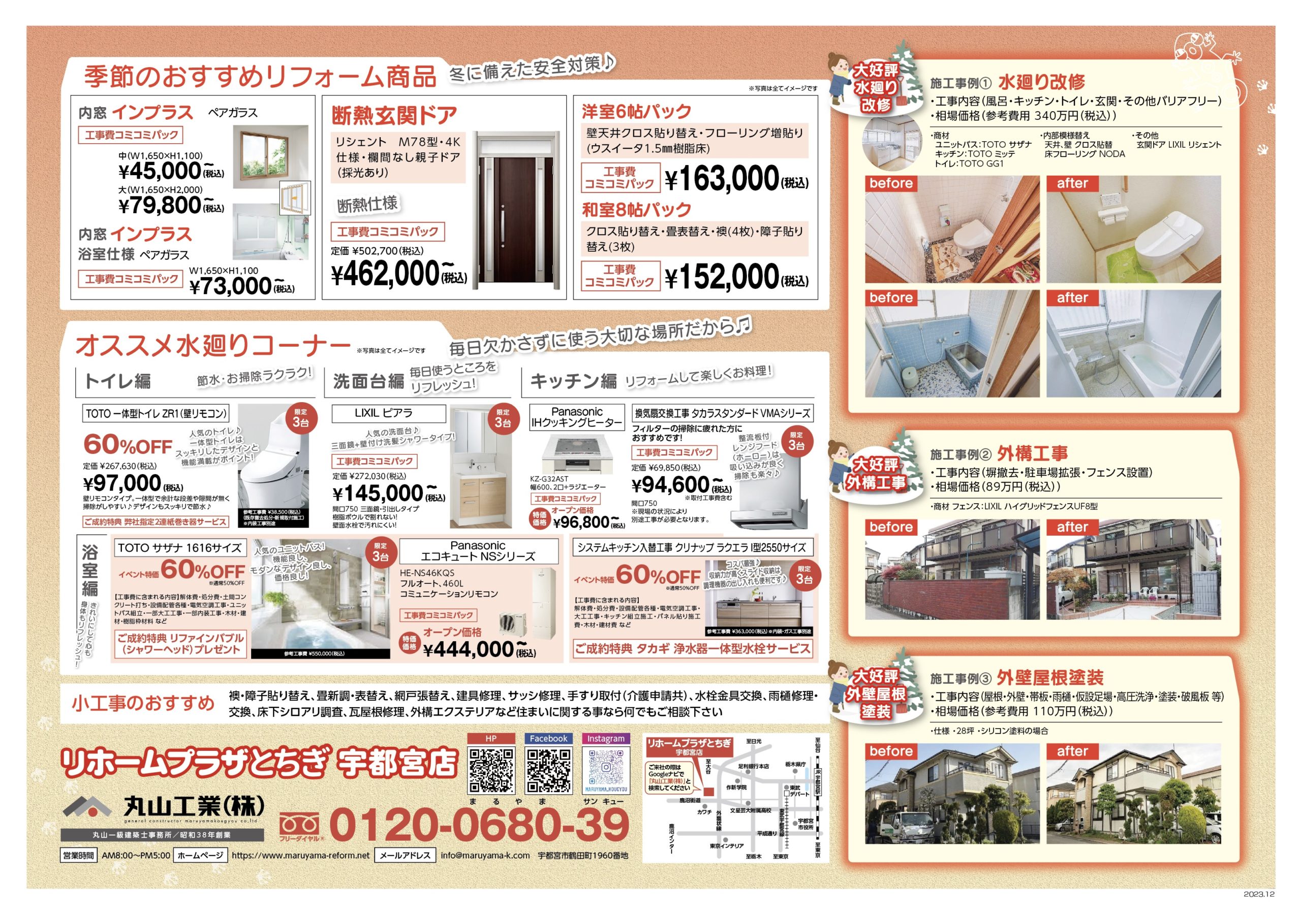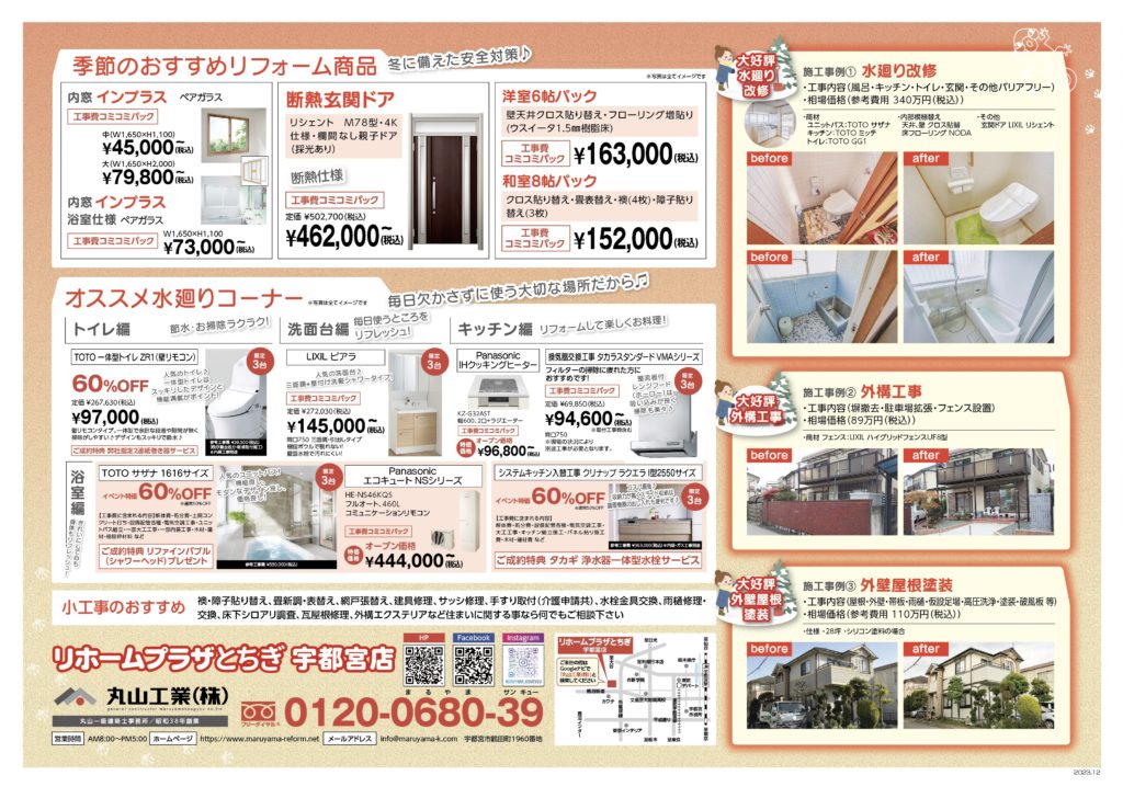 「季節のおすすめリフォーム商品」では冬に向けての寒さ対策の他、新年や新生活に備える方向けのリフォームをご紹介しております。