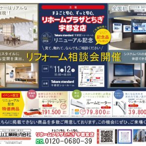 終了 リフォーム相談会 INタカラスタンダード宇都宮ショールーム 会場 タカラスタンダード宇都宮ショールーム 〒321-0933 栃木県宇都宮市簗瀬町2515番地2 開催日時 11/11(土)10:00~16:00 11/12(日)10:00~16:00