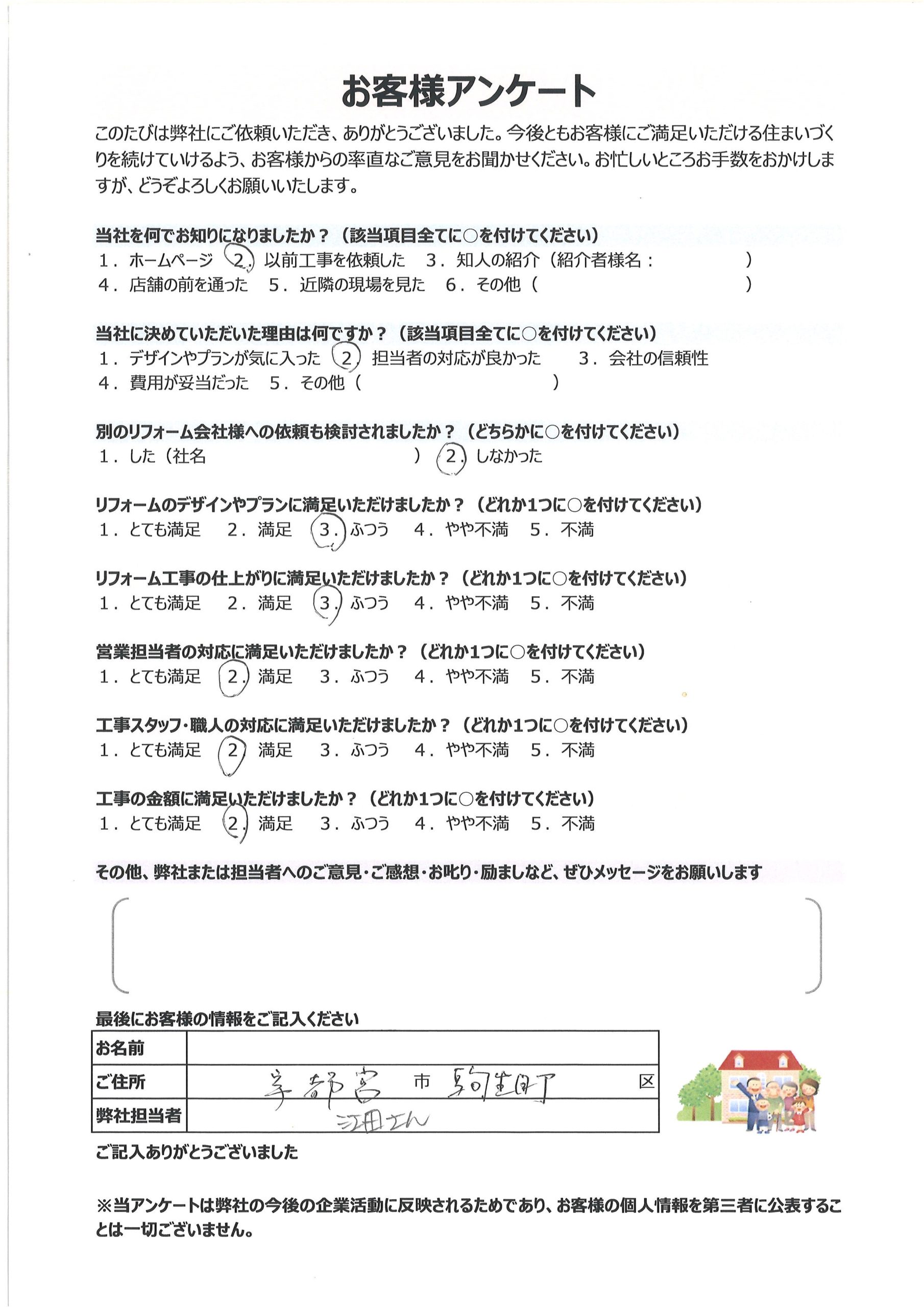 | 大変満足 | 満足 | ふつう | 不満 | 大変不満 |