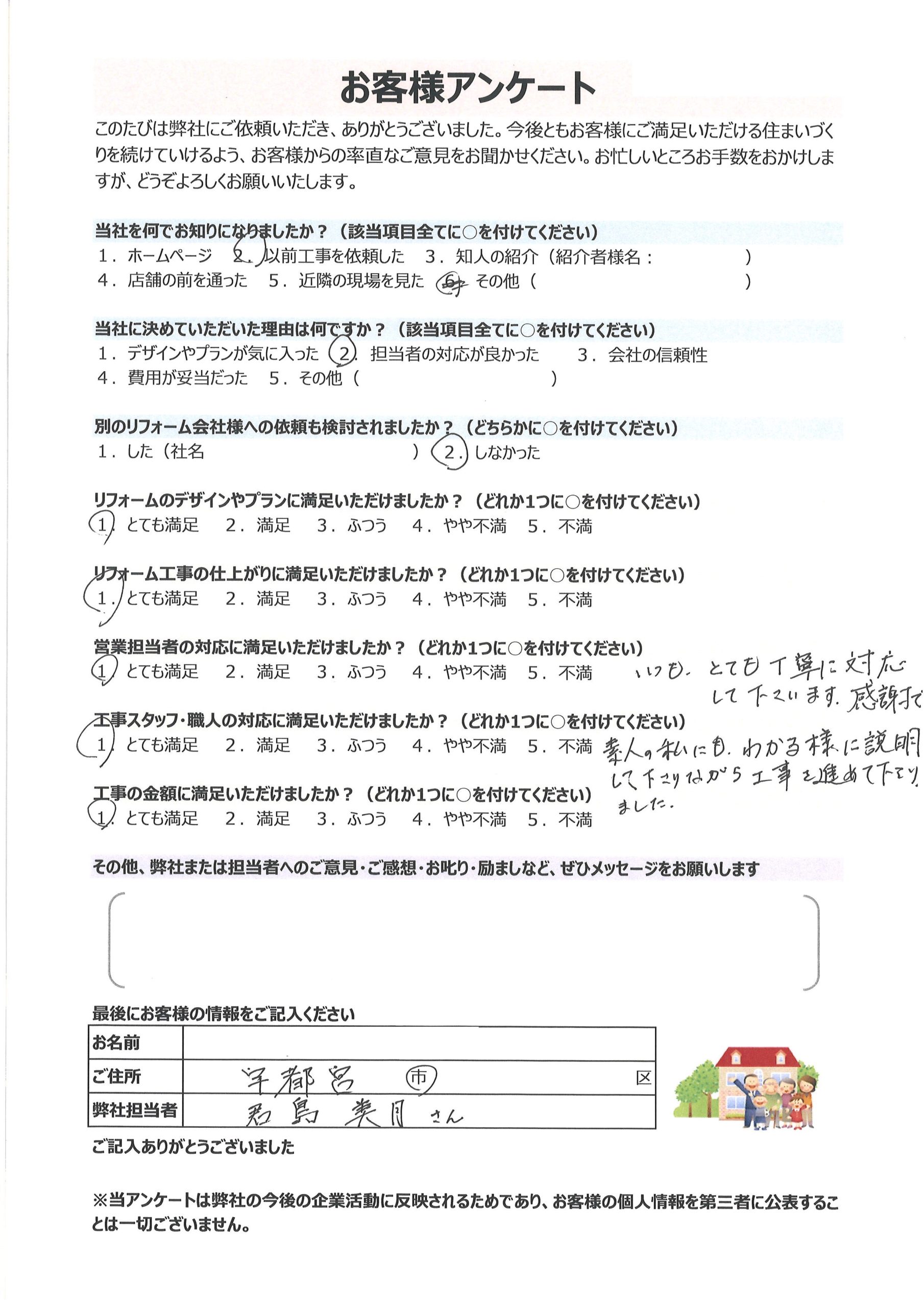 担当者の方は素人の私にもわかるように説明して下さりながら工事を進めて下さりました。