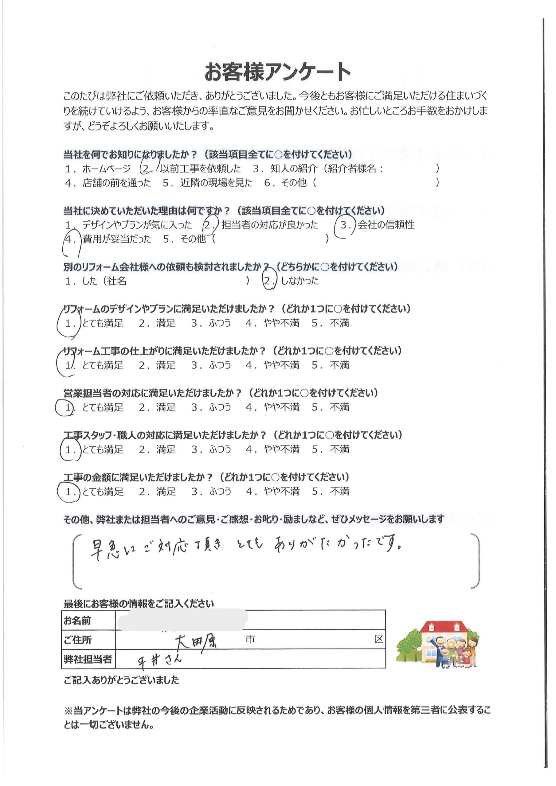 リフォーム工事の仕上がりに満足いただけましたか?