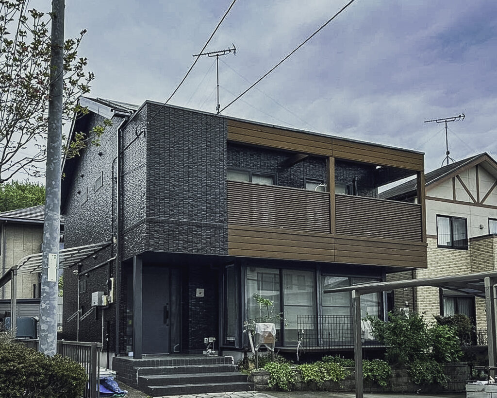 外壁目地やサッシ目地のコーキングの打ち替えから外回りすべての塗装を行い、色は黒で塗装しモダンに仕上げました。